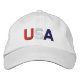 USA Red White Blue Embroidered White Hat