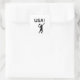 USA tennis player using the dot of the exclamation point as a ball. Black picture on a white background