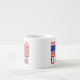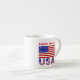 Personalised espresso cup features the flag of the United States of America with the letters USA below in the red, white and blue with stars and stripes, found in the flag. Personalise by adding your name, in red letters, or, for a creative gift, by adding someone else's name. Great for patriotic holidays like Independence Day. Fun to take to family reunions, travel groups, and clubs. Terrific housewarming gift for your patriot. Mum would like this for a Mother's Day gift.