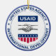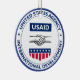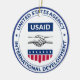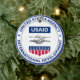 This custom Christmas ornament is decorated on one side with the United States Agency for International Development (USAID) shield. The reverse side is decorated with an image of Santa Claus carrying his bag of goodies, and can be customised with names, dates, etc.