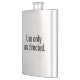 The product is a good size and came exactly as it was pictured. The lid is not attached to the flask, which could be dangerous on drunken nights... The print came out surprisingly well and looks very sharp. Would definitely recommend.