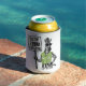 Use The Zebra Crossing Can Cooler. A cartoon zebra wearing sunglasses and a green jacket struck an elegant pose, carrying a plaque urging everyone to "use the zebra crossing!"