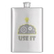 The product is a good size and came exactly as it was pictured. The lid is not attached to the flask, which could be dangerous on drunken nights... The print came out surprisingly well and looks very sharp. Would definitely recommend.