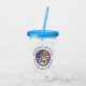 Stylish acrylic tumbler features Pro Democracy typography graphic of patriotic coloured centre Liberty Statue badge graphic with circular text that reads "Use your voice, use your vote, save democracy and vote blue. Tan background
