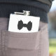 These 6 oz. flasks are a great favour for the ushers in your wedding. If all your wedding party will be wearing formal suits or tuxedos with bow ties this design with a traditional double bow tie in black would be perfect. They'd be great for a bachelor party or weekend.