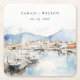 Ushuaia, Argentina Watercolor Landscape Wedding Square Paper Coaster