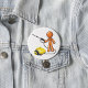 🌈 Vivid Colours: The bright orange of our character pops against the clean white background, making this button an attention-grabbing accessory.