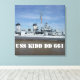 A canvas print featuring a photo of the USS KIDD DD 661 docked on the Mississippi River in Baton Rouge, La.