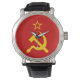 Yellow hammer and sickle on red flag. Historic flag of the Soviet Union.