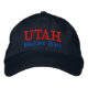 Blue and Red colours with Utah Beehive State slogan in embroidery on a navy womens cap. Show your home state Utah pride.