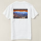 Nine landscape icons in Utah are featured on the front of the shirt, with Utah in bold letters. On the back is Mesa Arch at sunrise in Canyonlands National Park.