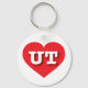 This key chain features a vibrant red heart containing the bold, white, upper case letters UT, the official abbreviation for Utah, the beehive state.