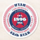 This paper coaster has a patriotic circular typography design with red, white, and blue colours representing the United States of America flag. The text includes the state's name Utah, its capital Salt Lake City, its residents' name Utahns, the Rocky Mountain region, its time zone(s), and geographic coordinates. Utah was the 45th state to gain its statehood in 1896. It is represented with text as the "45th star" in this design. This paper coaster is great as a souvenir or for parties and businesses. All shape options are available, however, you may need to adjust the design size in the design tool to make it fit correctly.