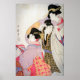 Enjoy this beautiful reproduction of the 1805 woodblock print "Two Geishas with a Tipsy Client" by Japanese artist Kitagawa Utamaro. Ukiyo-e ("pictures of the floating world") is a genre of Japanese woodblock prints (or woodcuts) and paintings produced between the 17th and the 20th centuries, featuring motifs of landscapes, tales from history, the theatre, and pleasure quarters. It is the main artistic genre of woodblock printing in Japan. The Floating World store on Zazzle painstakingly restores these historical treasures to their true colours and fixes basic aging issues. Paper texture and colour are maintained because it reveals the aged beauty of these master works of art.