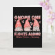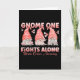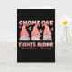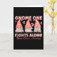 Uterine Cancer design featuring peach coloured gnomes with the words "Gnome one fights Alone". For anyone fighting cervical cancer. To be worn during Cancer Awareness Month.