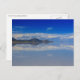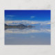 Uyuni salt plains in Bolivia with skyline & mountain reflected in the water covered plains.