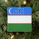 Celebrate your heritage or commemorate a special trip with this beautiful Uzbekistan flag ceramic ornament! The design features the vibrant blue, white, and green horizontal stripes of the Uzbekistan flag, accented by the red fimbriations and the iconic crescent moon and twelve stars. Whether it’s hanging on a Christmas tree, displayed in a window, or used as a year-round decorative accent, this ornament is a meaningful way to show your Uzbek pride.