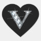 "V" Diamond Bling on Black Heart Sticker