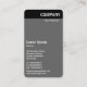 A vertical business card template with a black header with an image on the front. Company name in the header on the front and back with All other contact details on the back. The photo or image on the front can also be changed. The design also allows plenty of scope for additional customisation.