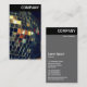 A vertical business card template with a black header with an image on the front. Company name in the header on the front and back with All other contact details on the back. The photo or image on the front can also be changed. The design also allows plenty of scope for additional customisation.