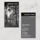 A vertical business card template with a black header with an image on the front. Company name in the header on the front and back with All other contact details on the back. The photo or image on the front can also be changed. The design also allows plenty of scope for additional customisation.