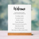 Welcome appears in a script at the top of this house rules sign for a short-term rental house. A short opening statement is below the script. Then there are eight house rules for a short-term rental house. All of the text is black. All of the text can be changed to reflect the unique rules for your vacation rental property.