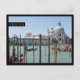 Postcard with gondolas and gondoliers on the water of the Canal Grande with the Santa Maria della Salute church in the background creating a romantic city landscape during the summer holidays in Venice, Italy with a black edge around it and the text: 'Venice'.