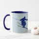 This mug features a simple image of a blue downhill skier on a light blue background. The skier image is on two sides of the mug, with your custom text in the middle, also in blue. It currently says VAIL , but you may personalise it. This is a terrific gift for anyone who enjoys skiing at Vail , Colorado. *Clip art used in this design is copyrighted by Encore Software, Inc., which permits use to its licensors. All rights reserved.