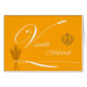 Baisakhi, Vaishakhi paper greeting card with grains, ribbon, and Khanda symbol. Card to celebrate the harvest of the rabi crop in April and the birth of tenth Sikh Guru, Guru Gobind Singh. Saffron gold coloured card with tan and white. Image and verse copyright © Shoaff Ballanger Studios.