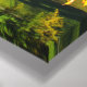 Canvas landscape print of the village of St. Magdalena or Santa Maddalena with the characteristic church in front of the Geisler or Odle Dolomites mountain peaks in the Val di Funes valley (Villnoesstal) in Italy in autumn surrounded by autumn leaves.