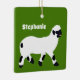 Add a name to create an adorable personalised gift. Whether they're a farmer who raises sheep or just someone who loves sheep and other farm animals, they're sure to appreciate the illustrations of Valais Blacknose Sheep in white and black on this Christmas ornament. The graphics are set against a grass green background with your name in bold white lettering.