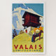 Valais Switzerland Farmhouse and mountain - Great Vintage Travel Poster. Old travel poster advertisement promoting vacation travel to Switzerland.