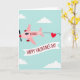 This sweet card shows a gentle scene filled with love and warmth. A pastel pink airplane glides smoothly across a soft blue sky, moving from left to right and drawing the eye along its path. Trailing behind the plane is a bright red heart attached by a thin black string, symbolizing love being carried through the air. Near the plane, the message “XOXO” appears as a tender detail. Below, a white banner unfurls with “HAPPY VALENTINE’S DAY” written in bold red letters. Fluffy white clouds float in the background, adding a dreamy touch. The mix of soft blues, gentle pinks, and rich red creates a joyful and heartfelt Valentine’s Day card. ❤️💌🍫