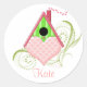 Great for so many purposes, identify things that belong to you by using these adorable Valentine Birdhouse Round Stickers. Valentine Birdhouse is from the Birdie Village Collection created by Debi Payne Designs. Valentine Birdhouse is a heart-shaped birdhouse in beautiful shades of pink and bright green. It gently nestled in delicate, swirling green vines. Valentine Birdhouse is perfect for Valentine’s Day, weddings, anniversaries or any time of the year. Personalise your sticker with your name or any text you choose.