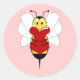 Cute smiling bumble bee with big white wings hugging a heart. Great for bumble bee lovers!