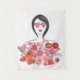 A sweet watercolor of a sweetheart in her heart glasses and pretty flower bouquet.