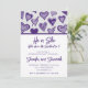 💕💌 Designed with the modern mother and parents-to-be in mind, this invitation is a delightful blend of sweetness and simplicity, capturing the essence of Valentine's Day and the excitement of a gender reveal party. Against a pure white background, a charming banner of cute hearts in mallow and purple adorns the top of the invitation, creating a whimsical and heartfelt introduction to the celebration. 🌸🎉
