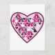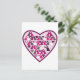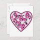 Postcard with heart and pink, white and black rabbits. Valentines’ Day design.