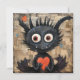 Cute cartoon illustration of a dragon/cat holding a red heart. Original art by Circe Denyer.