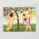 Valentine Fairy and Cherub Gathering Hearts Holiday Postcard