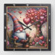 Valentine Garden Gnome Heart Tree Square Wall Clock