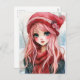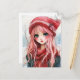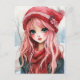 Adorable illustration of a girl wearing a red hat in a winter scene.