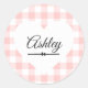 Valentine Heart Pink Gingham Pattern Name Monogram Classic Round Sticker