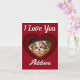 Valentine heart shih tzu love Custom photo name Card. Shihtzu with text I love you dark red card. Personalise with your name and photo. Valentines dog lovers card idea. Beautiful adorable cuddly dog lying on the floor. Brown and white puppy with long hair, big round dreamy eyes and black nose.