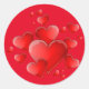Sticker shown in a small round shape with a cute valentine hearts print.