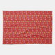 Red a Valentine’s kitchen towel covered in coloured hearts, background can be switched to any colour.