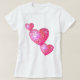 Valentine Hearts shown on the front of this women's crew-neck shirt. Hearts made to look like shimmering Ruby square stones that form a heart shape. Top shown in White.