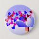 Button with my artwork of pink, red and blue hearts flying out of a rural mailbox.