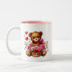 This ceramic coffee mug is shown with a cute Valentine teddy bear hearts print.
