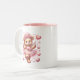 This ceramic coffee mug is shown with a cute Valentine teddy bear hearts print.